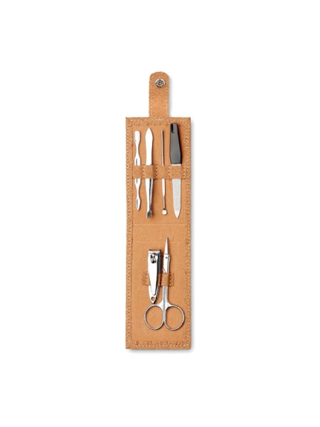 Ensemble de manucure dans une pochette rectangulaire en liège. Les 6 outils sont en acier inoxydable. Le liège est un matériau naturel, en raison de sa nature structurelle et de sa porosité de surface, le résultat d'impression final par article peut présenter des écarts.
