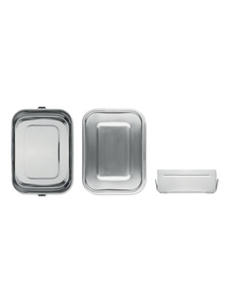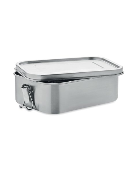 Boîte à lunch en acier inoxydable avec boucles latérales solides et sûres. Comprend un séparateur intérieur. Capacité : 1200 ml.