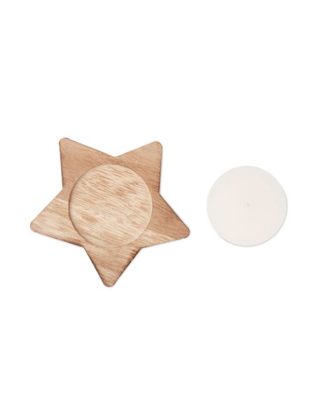 Bougeoir en peuplier en forme d'étoile avec bougie parfumée à la vanille.