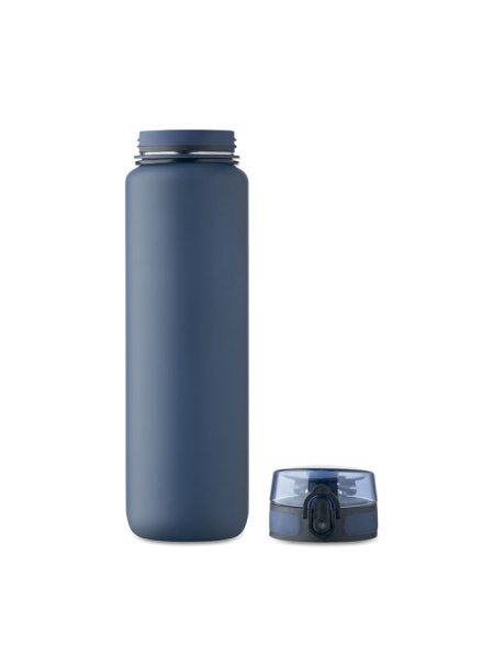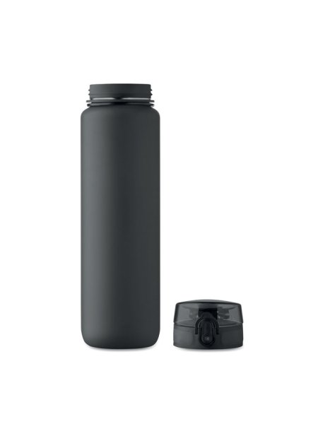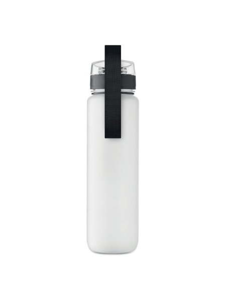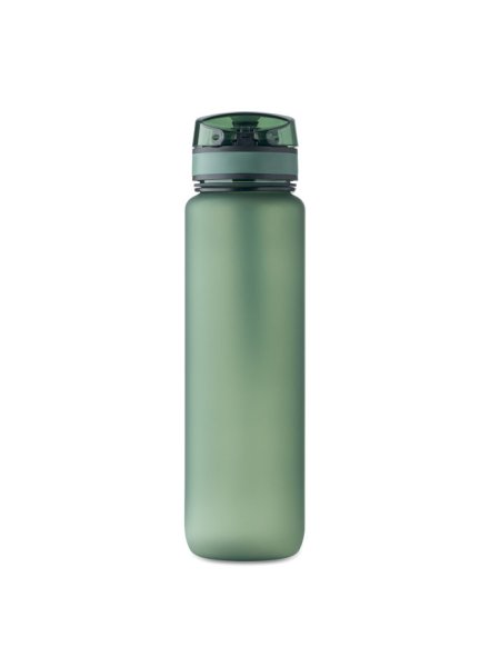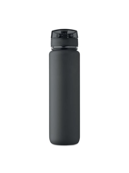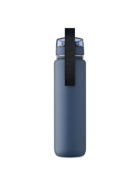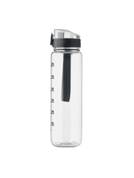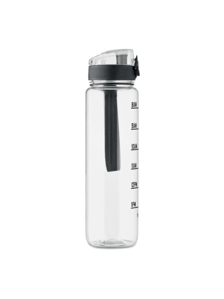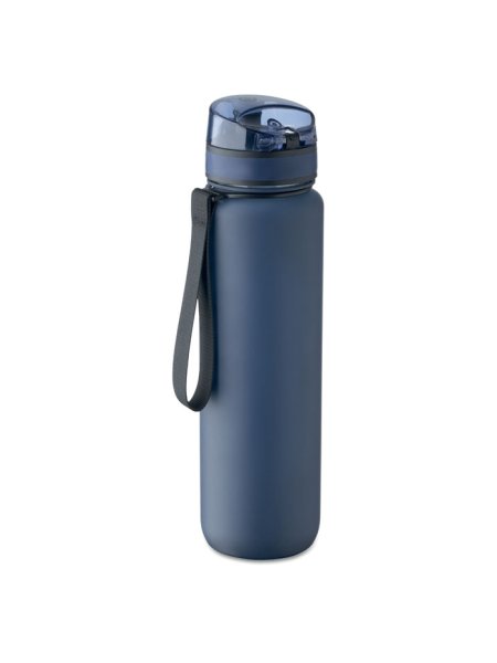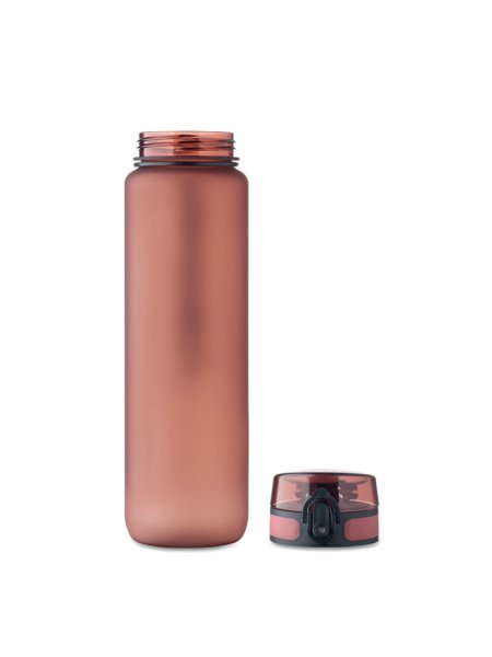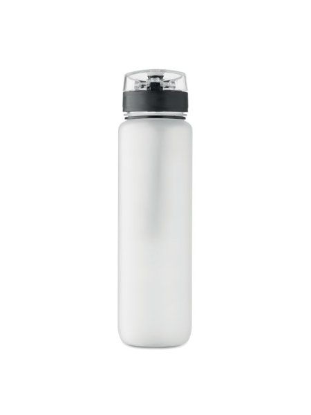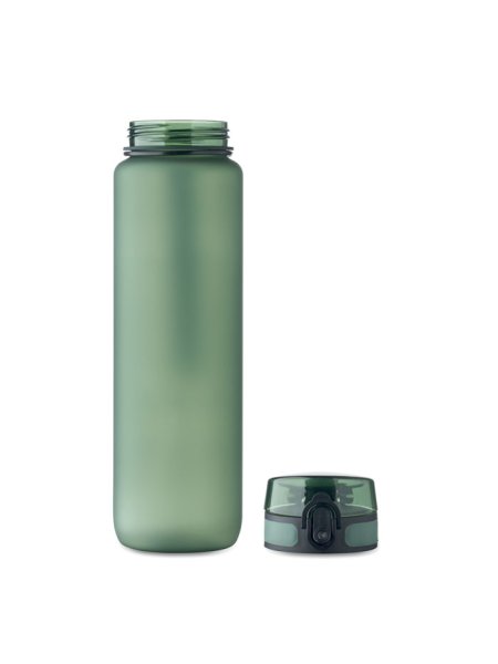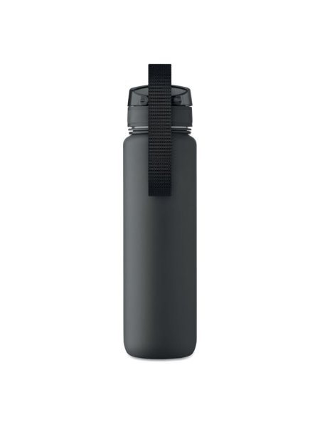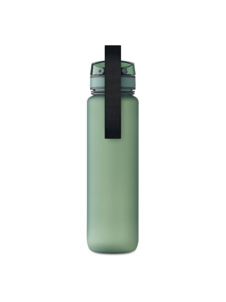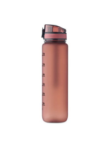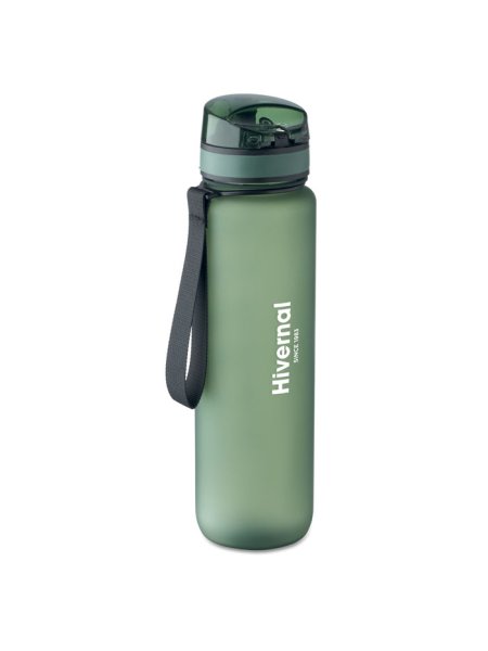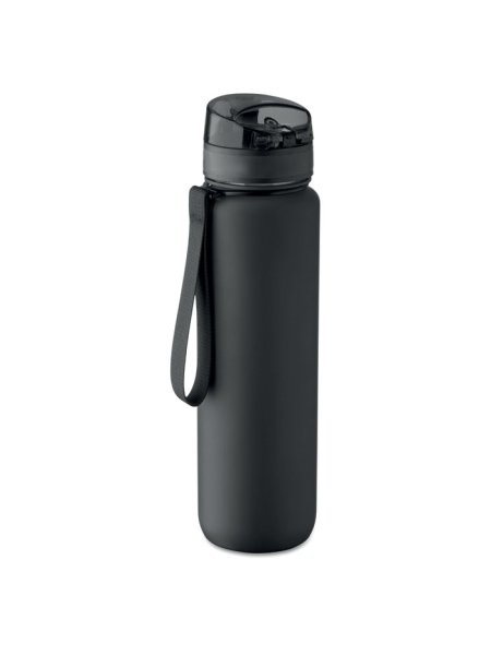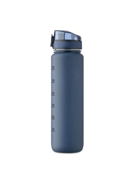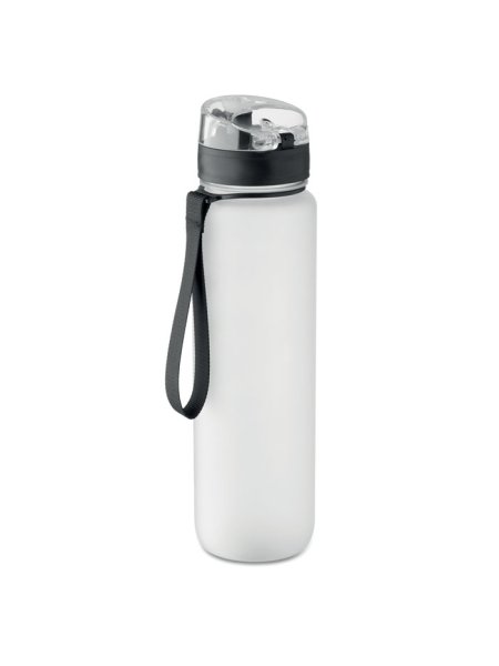 Bouteille de sport en RPET, marqueurs de temps motivants, couvercle à ouverture d'une seule main, fermeture de sécurité et sangle de transport. Anti fuite. Capacité : 1 litre.