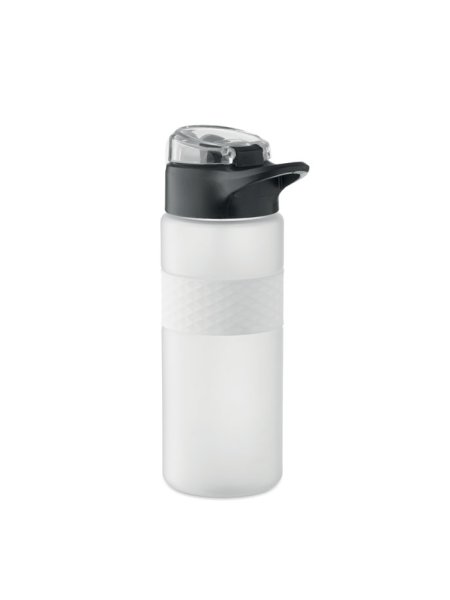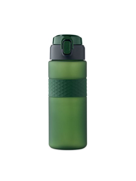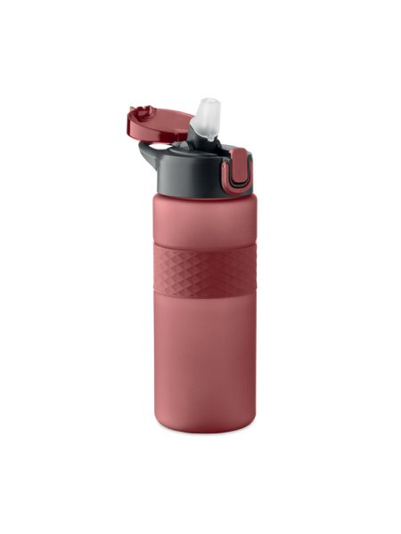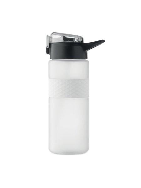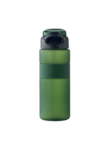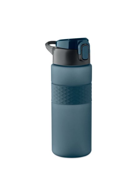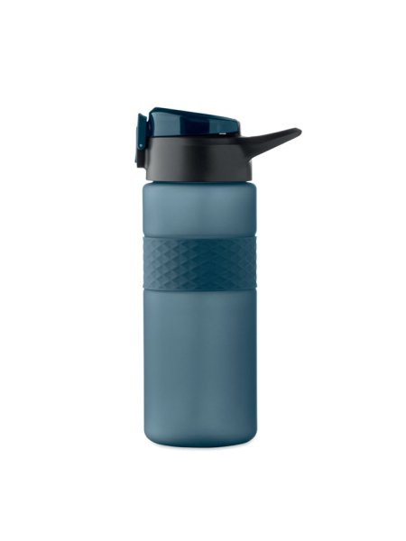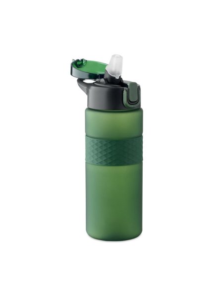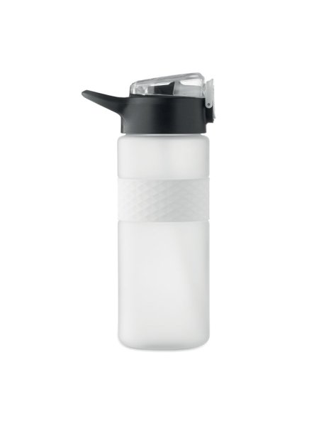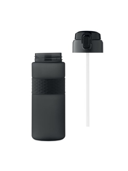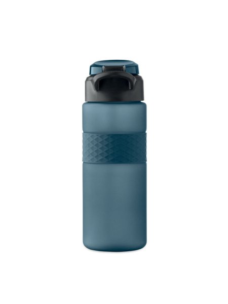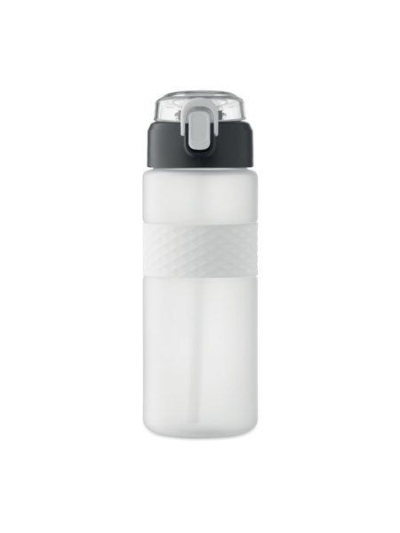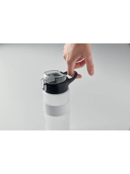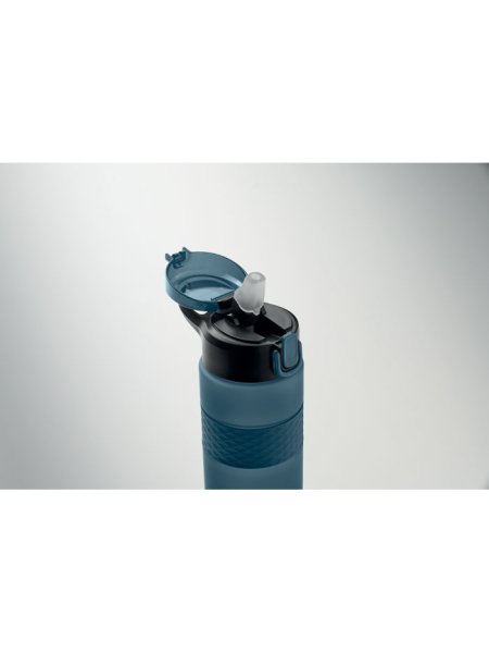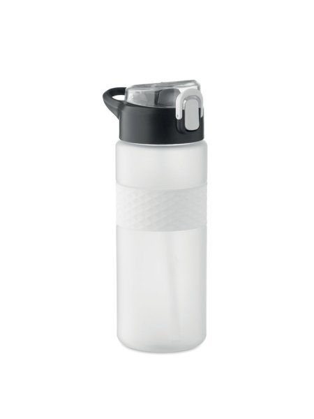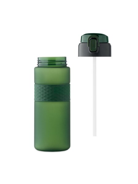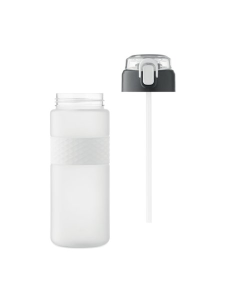 Gourde en RPET avec poignée en silicone, couvercle à rabat en PP et fermeture de sécurité. Paille intégrée. Anti fuite. Capacité : 700 ml.
