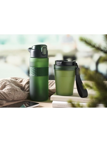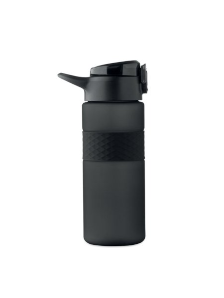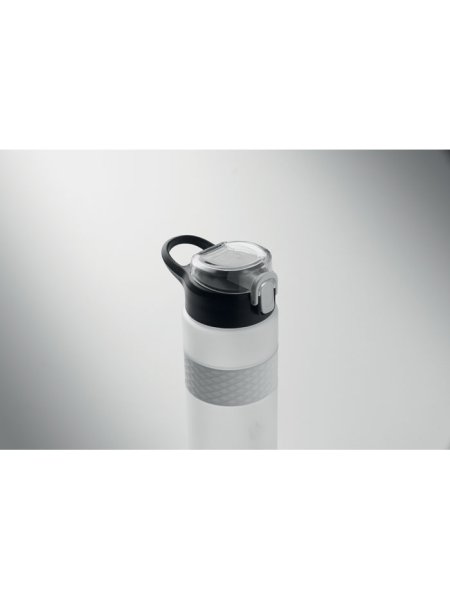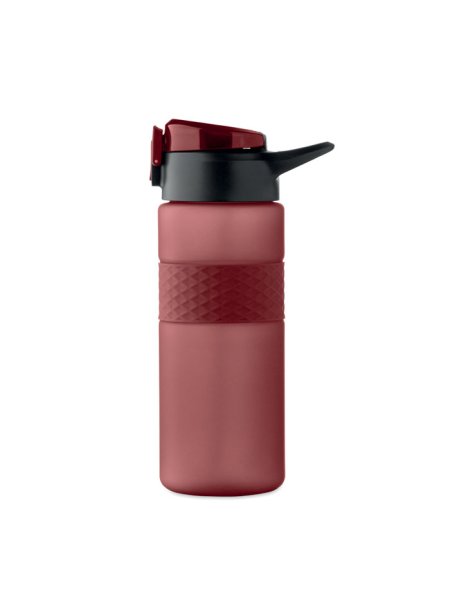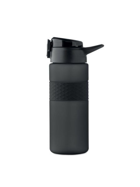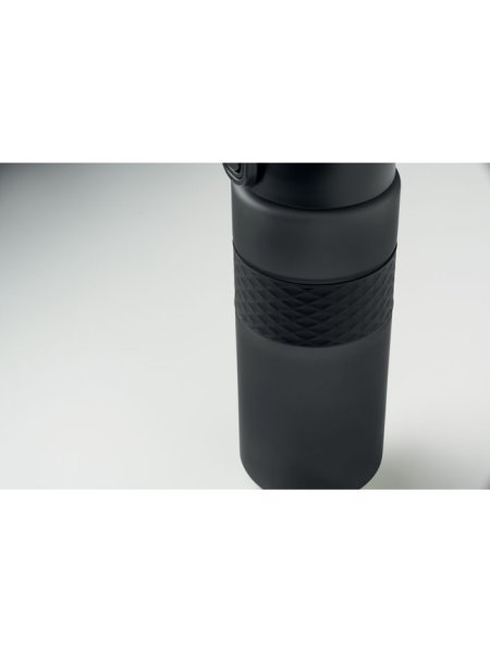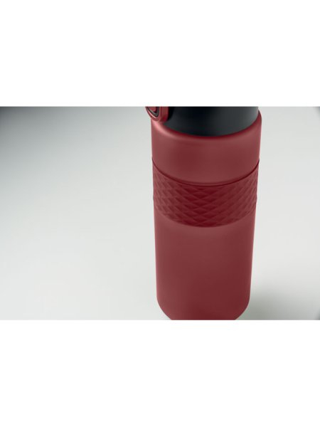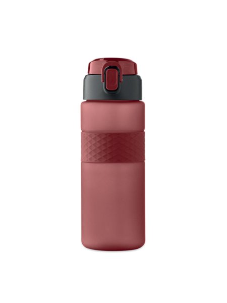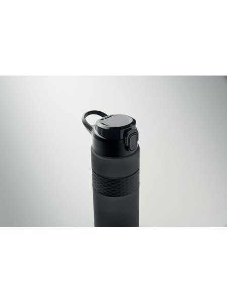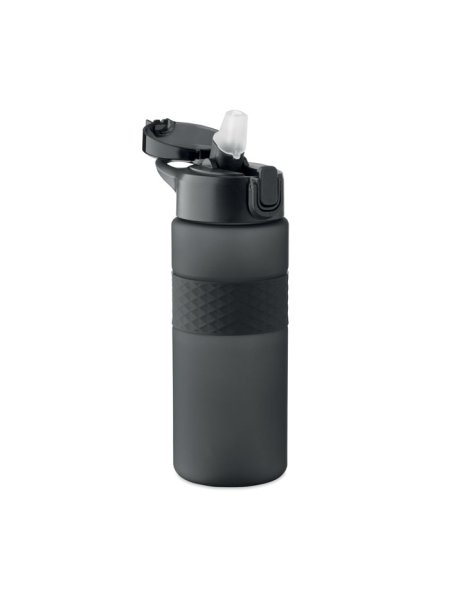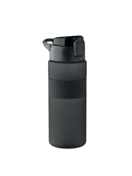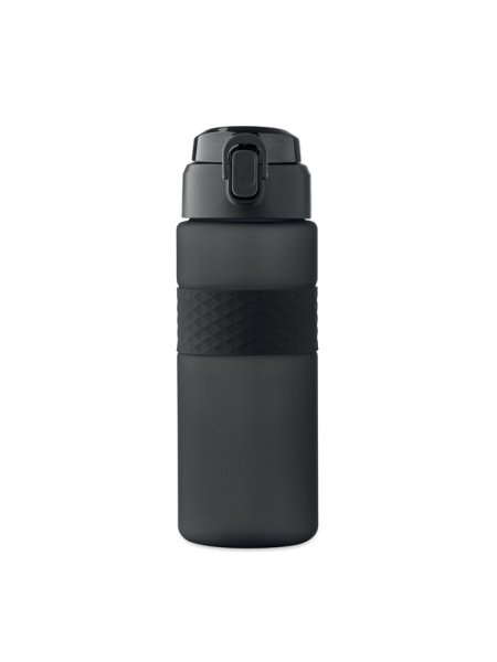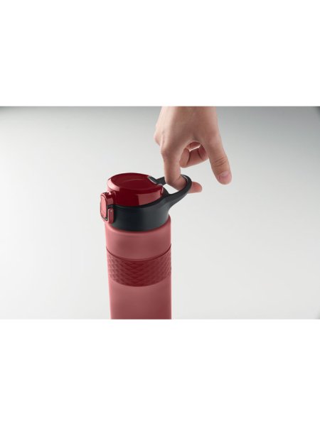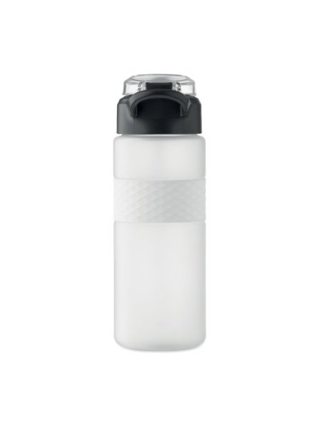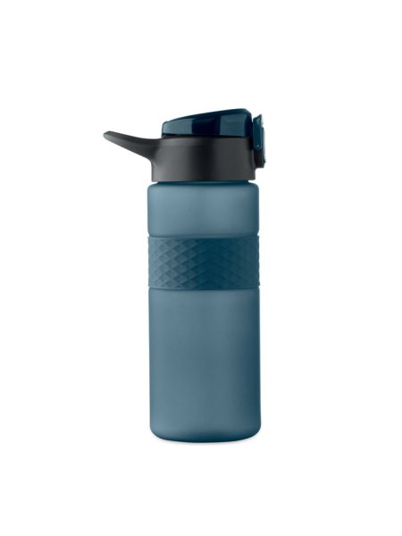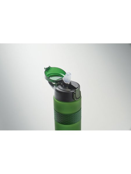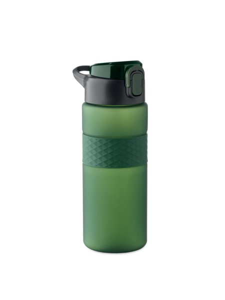 Gourde en RPET avec poignée en silicone, couvercle à rabat en PP et fermeture de sécurité. Paille intégrée. Anti fuite. Capacité : 700 ml.