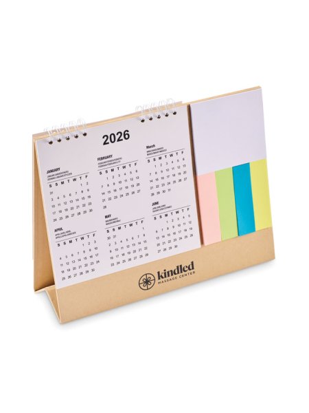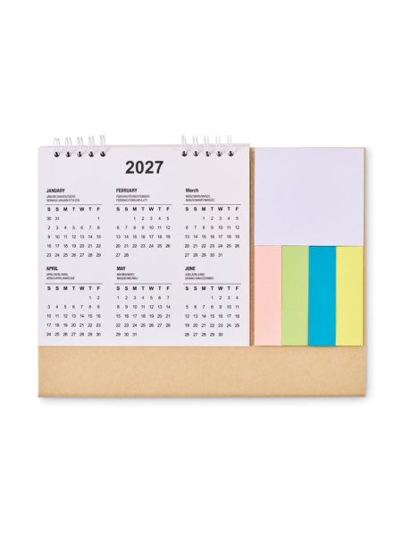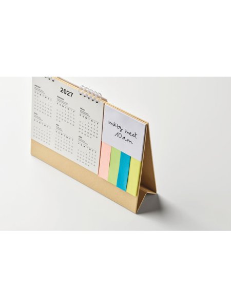 Calendrier de bureau de 4 ans avec notes autocollantes en 3 parties et mémopad dans un support en carton. FSC®-certified | FSC MIX, P8.6, FSC-C213206