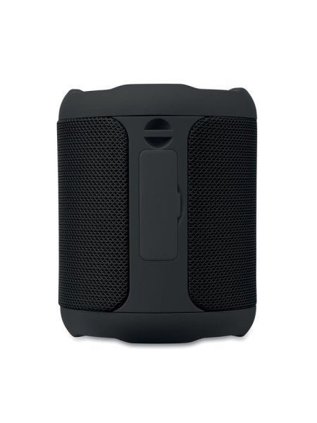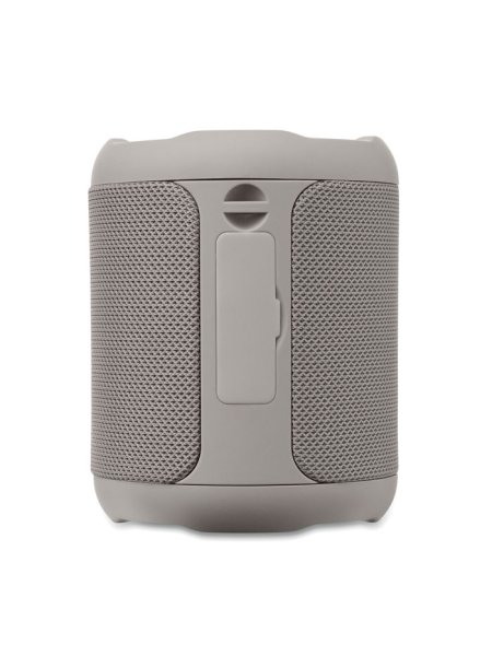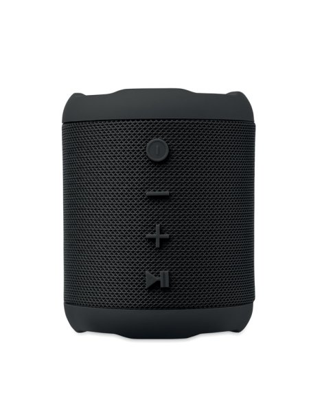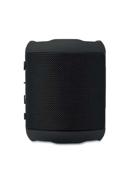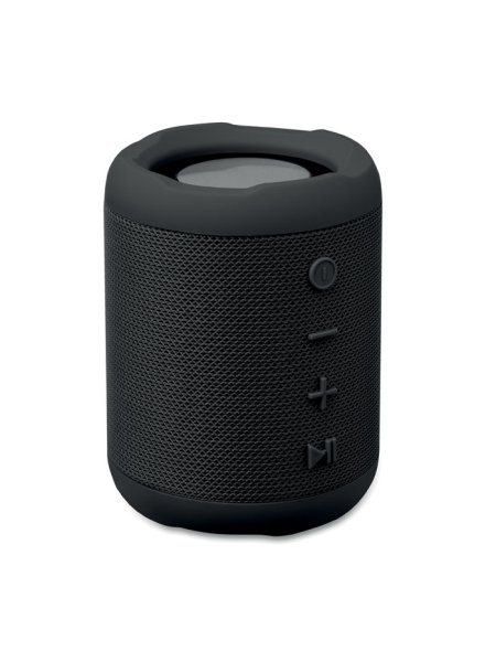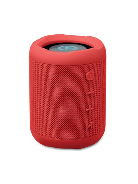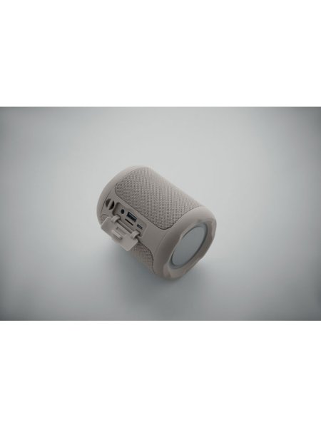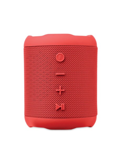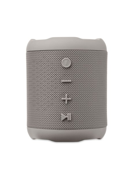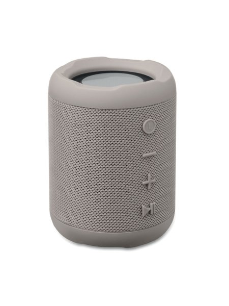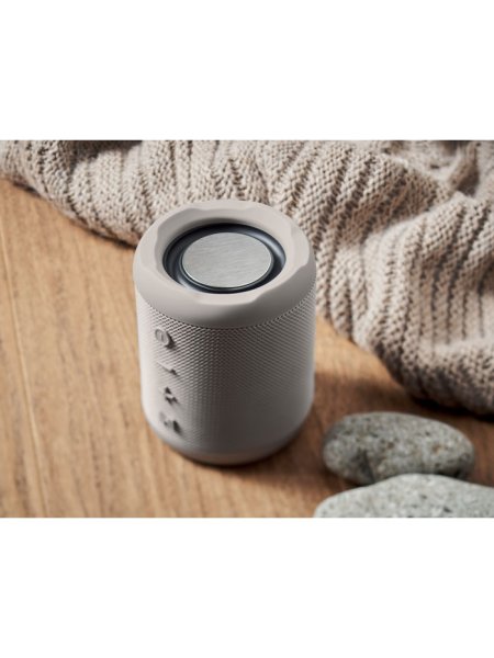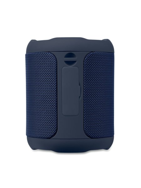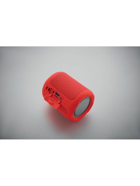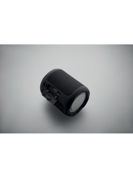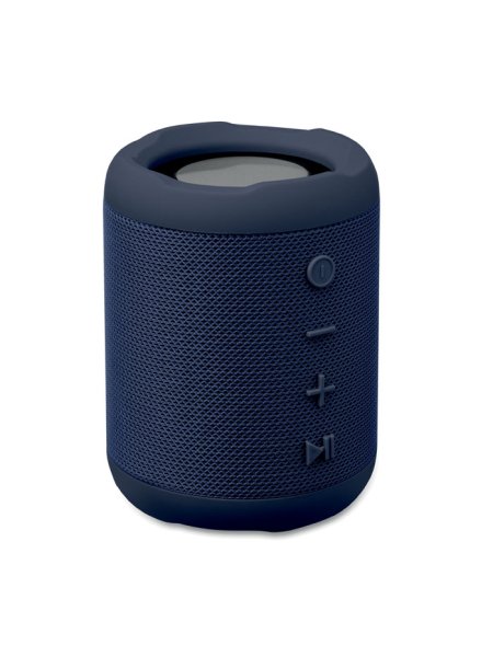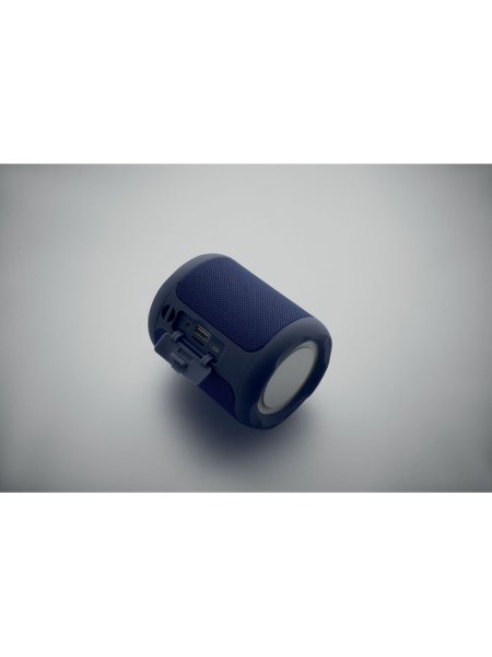 Haut-parleur 5.0 sans fil en ABS avec tissu RPET. 1 Batterie rechargeable Li-ION 800 mAh incluse. Comprend un port pour carte SD et un câble AUX/USB. Données de sortie : 5W, 3 Ohm et 5V. Durée d'écoute d'environ 3 heures.