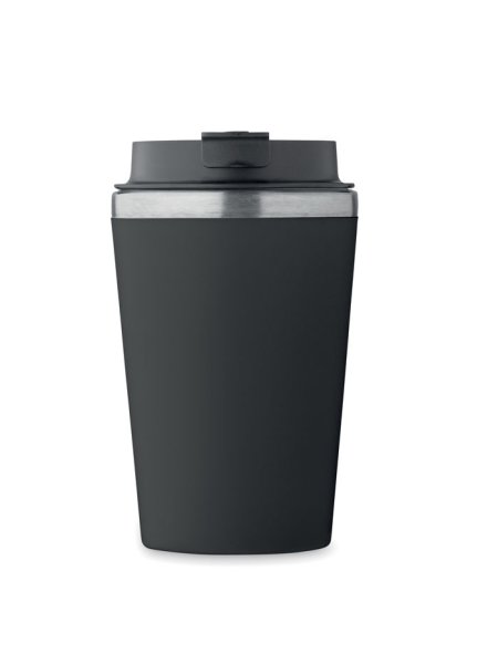 Gobelet à double paroi Paroi extérieure en PP et paroi intérieure en acier inoxydable recyclé (90 % d'acier inoxydable recyclé et 10 % d'acier inoxydable) et revêtement en céramique. Sans fuite. Capacité : 350 ml.