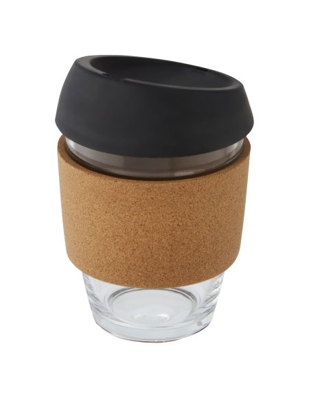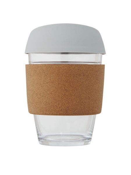 Gobelet Lidan de 360 ml en verre borosilicate avec grip en liège et couvercle en silicone