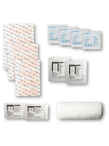 Ce kit premiers secours est très utile à la maison ou dans la voiture pour parer aux urgences. Contient: 12 pansements, 4 cotons pour nettoyer la peau,2 cotons secs, 1 bandage élastique, 2 compresses pour les brulures. Tous les contenus à l'intérieur des kits sont conformes à la législation européenne. Le prix comprend l'étiquette personnalisée.