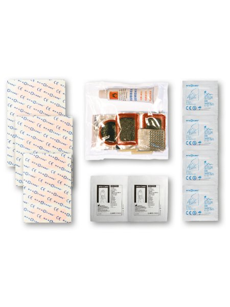 Optez pour l'ensemble MyKit Réparation Vélo, un kit essentiel pour la réparation de vélo et les premiers secours. Ce package personnalisable comprend 12 pansements, 4 tampons pour nettoyer la peau, 2 tampons secs, et un kit de réparation. Tous les éléments sont conformes aux normes européennes. Le prix inclut une étiquette personnalisée.