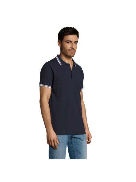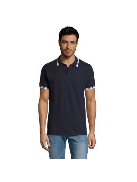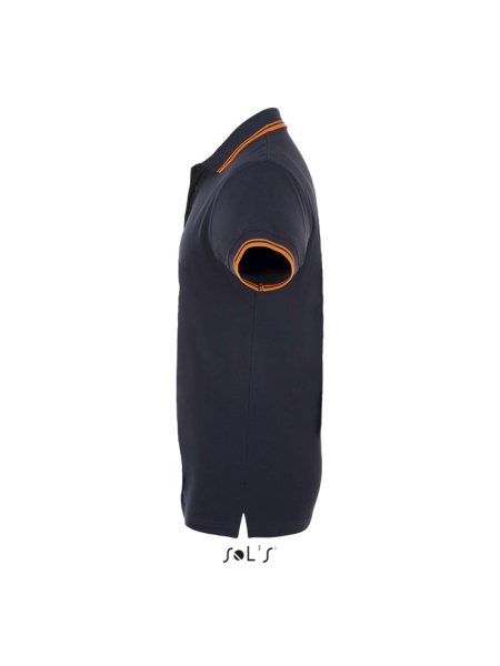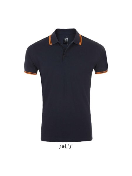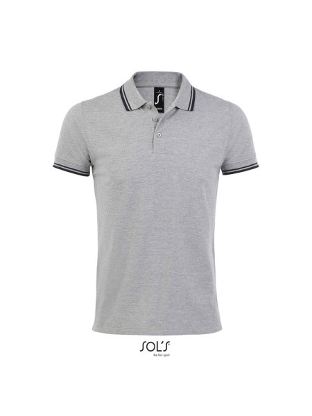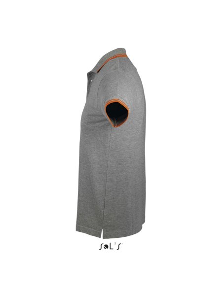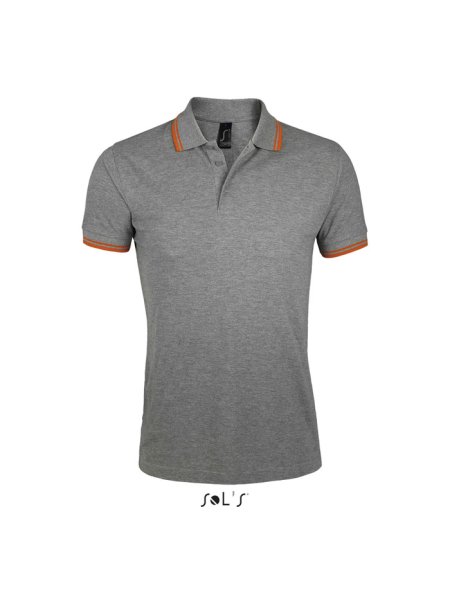 SOL'S PASADENA MEN, Polo Homme, 100% coton peigné Ringspun Maille piquée 200, Col et bas de manches en bord côte, Bande de propreté au col, Manches courtes, Col et bas de manches rayés, contrastés, Patte de boutonnage 3 boutons ton sur ton, Coupe ajustée, Coupé cousu, Fentes latérales, Bouton de rechange sur couture intérieure côté, (1) Gris / Marine : 85 % coton / 15 % viscose, (2) Gris chiné / Orange : 85 % coton / 15 % viscose. Pour la correspondance des tailles, veuillez vous référer au size chart dans la documentation produit.