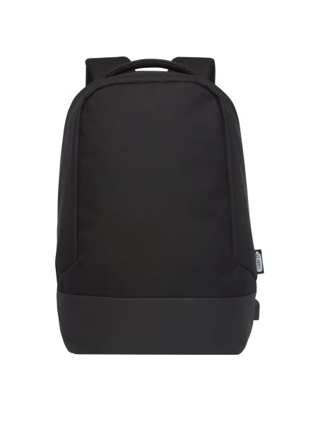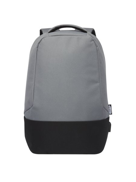 Découvrez le sac à dos anti-vol Cover, fabriqué en RPET et comprenant un compartiment principal ouvert avec un panneau d'organisation, une housse rembourrée pour un ordinateur portable de 15", et deux poches dotées d'une protection RFID. Il dispose également d'un port USB sur le côté droit pour une connexion et une charge facile des appareils depuis l'intérieur. Les bretelles matelassées, la bandoulière droite, la poche à glissière dissimulée, la poignée et le passant pour trolley sont également inclus. Environ 15 bouteilles en plastique ont été recyclées pour la fabrication de ce sac.