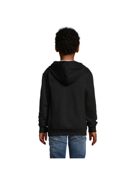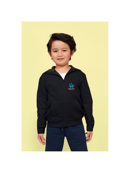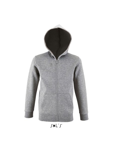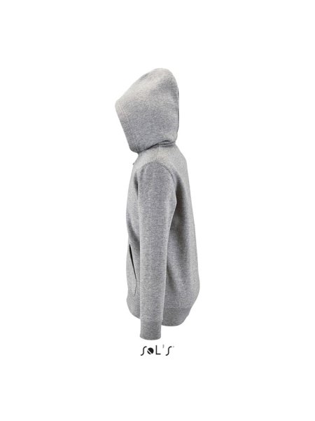 SOL'S STONE KIDS; VESTE ZIPPÉE À CAPUCHE; 50% coton Ringspun 50% polyester Molleton gratté 260; Manches montées; 2 poches kangourou; Capuche; Poignets et bas en bord côte; Tubulaire; (1) Gris chiné : 50 % coton / 50 % polyester.Pour la correspondance des tailles, veuillez vous référer au size chart dans la documentation produit.