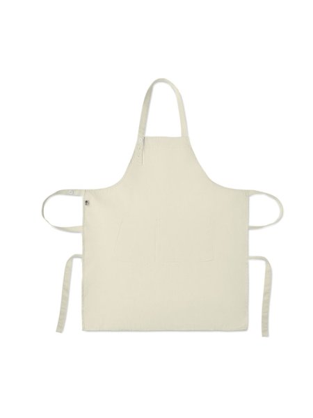 Tablier à bavette réglable avec 1 grande poche frontale à 2 compartiments en coton biologique 240 gr/m². Avec bouton de réglage sur le tour de cou. Ce produit est certifié OEKO-TEX® STANDARD 100.